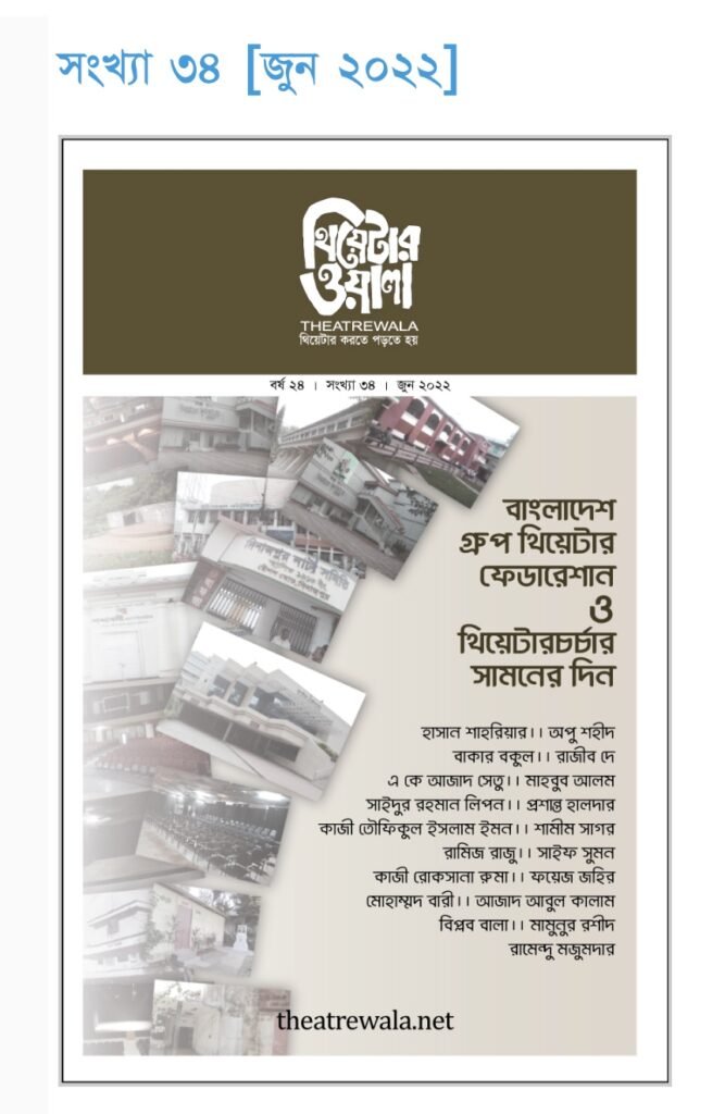 (Bangladesh Group Theatre Federation and the Progress of Theatre Practice: A Review of an Article and Personal Opinion), Theatrewala, Volume 34, 2022