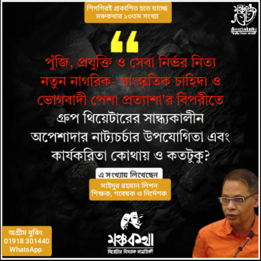Society and the Group Theatre Practice in Dhaka), Manchakatha, Issue 13, 2025.